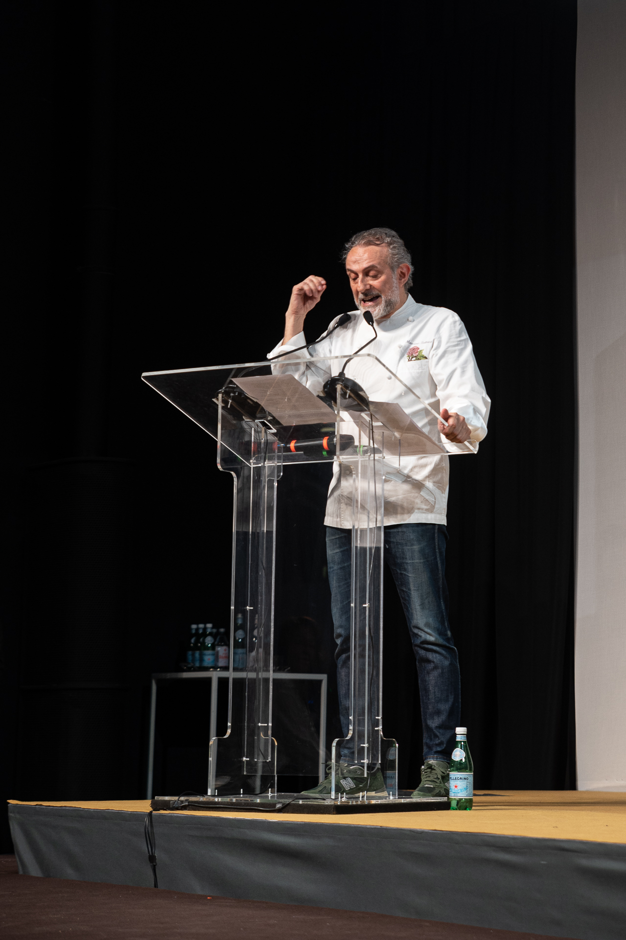 Niente presentazioni a effetto ma tanta sostanza: è quello che ha sempre caratterizzato gli interventi dello chef-imprenditore – ma a questa definizione ci sentiremmo di aggiungere quella di pensatore, lontano da derive pseudo-filosofiche ma capace di ragionamenti e “messe a terra” che hanno pochi uguali nel nostro Paese e non solo – abruzzese a Identità Milano, e anche quest’anno non è da meno. Tanto che la sua “lezione”, con slide e schemi riassuntivi degli ultimi 25 anni di cucina del Reale, affiancata a quella di Ferran Adrià, potrebbe fare da punto di partenza per un (necessario) manuale teorico-pratico per gli chef-patron del futuro.
