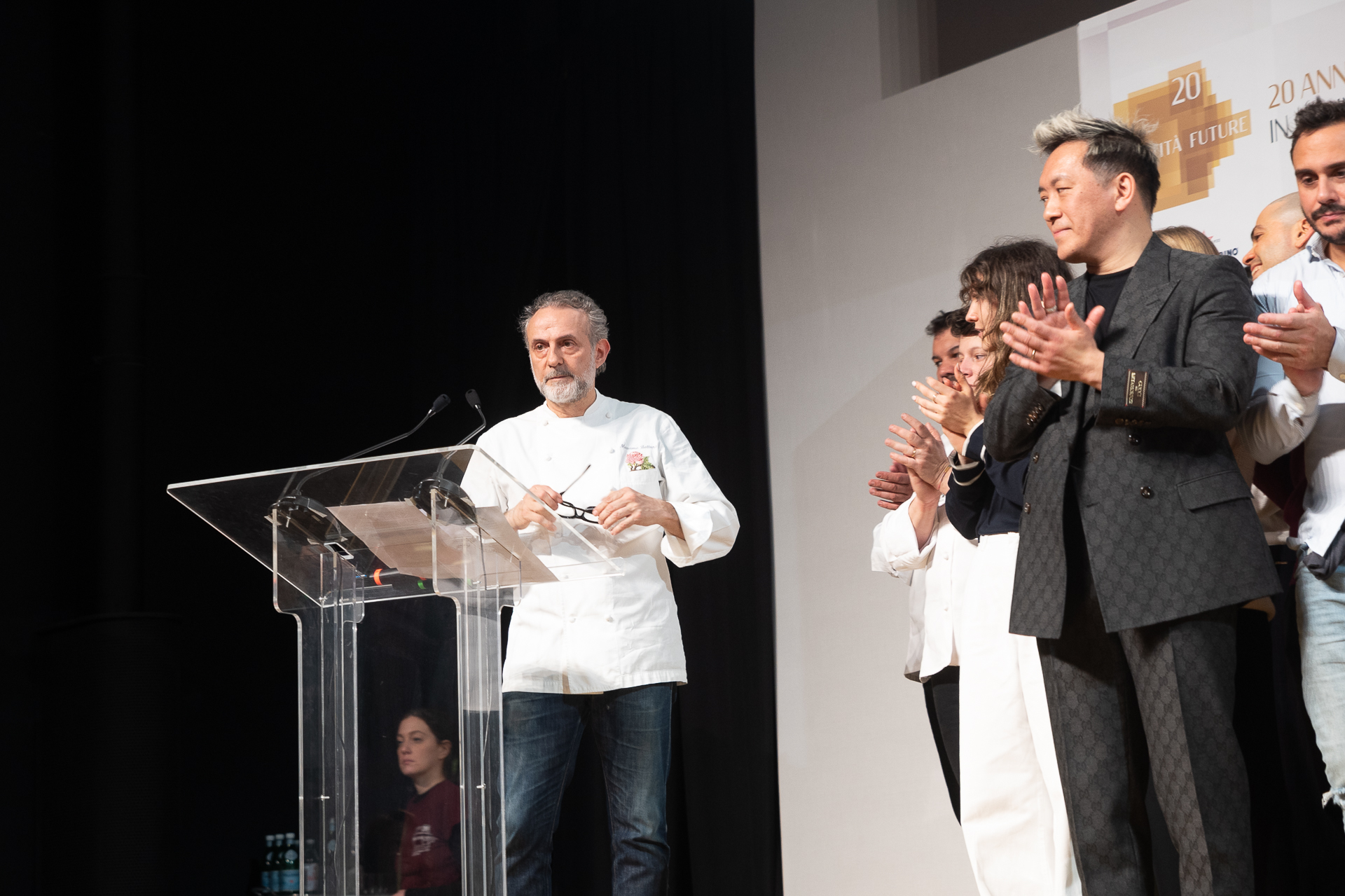 Uno dei momenti più emozionanti del congresso è stato quando sul palco è salito Massimo Bottura con tutte le persone che lavorano nell’ambito della Francescana Family, la “famiglia allargata” dell’insegna, il gruppo di ristoranti che oggi fa capo all’Osteria Francescana, inaugurata dallo chef modenese nel 1995. Il mondo della gastronomia è cambiato completamente da allora: oggi, se c’è stata questa trasformazione, lo dobbiamo anche a Bottura e al suo operato. Un agire consapevole che non si è fermato ai fornelli, superando i confini della cucina in sesso stretto, con attività che hanno avuto un impatto sulla società: dalla creazione dei Refettori nel mondo, per offrire pasti caldi ai meno abbienti, alle campagne di sensibilizzazione sull’anti spreco. Un video di 6 minuti ha ripercorso le tappe di una vita tra arte e cucina, tra progetti sociali e premi, tra riflessioni e riflettori. Il palco di Identità Golose ha rappresentato l’occasione per presentare tre piatti del nuovo menu dell’Osteria FrancescanaMiseria e Nobiltà. “La cucina italiana interpreta al meglio questo concetto, perché il nostro Paese ha sempre avuto un legame profondo con la miseria: le famiglie hanno trasformato la scarsità in opportunità, dando origine a piatti che ancora oggi appartengono al nostro patrimonio culinario”, ha detto lo chef tre stelle Michelin. Ecco allora la miseria vista come “un’opportunità per liberare l’immaginazione” e una serie di ricette nate dalla commistione tra ingredienti umili e di recupero (come il pane raffermo) e ingredienti nobili.